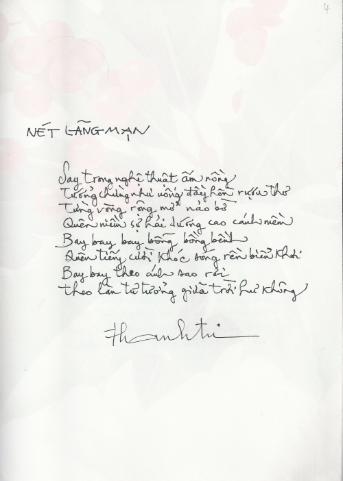Xin nhấn vào tựa đề để nghe ca khúc Nét Lãng Mạn, nhạc Mộc Thiêng, tiếng hát Hà Thanh (VN)