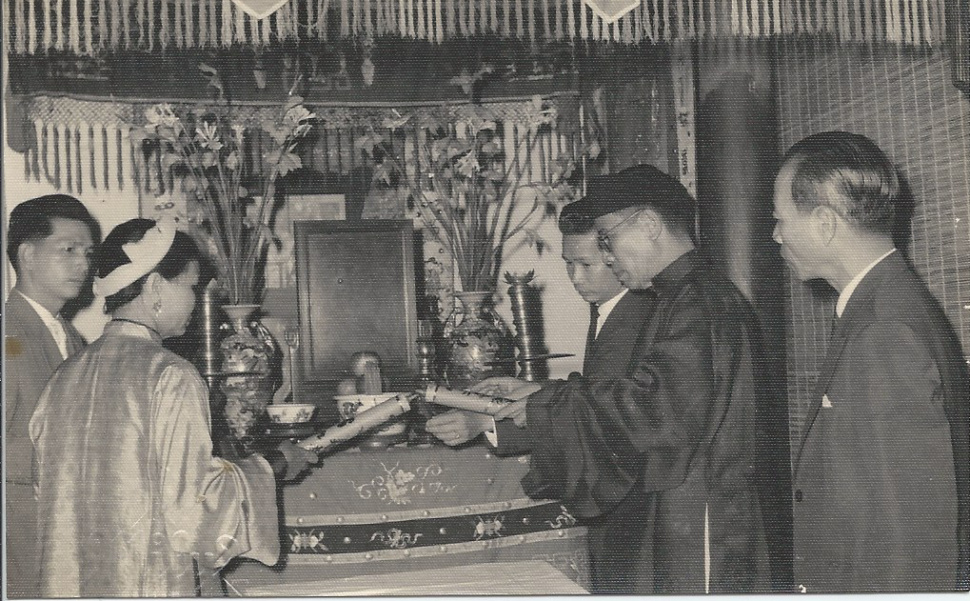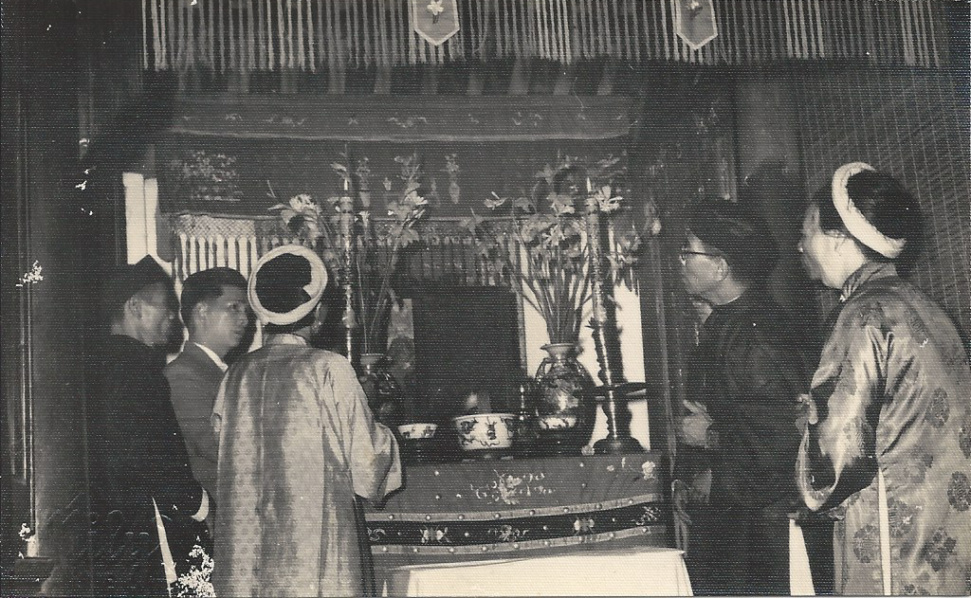 Dì dượng trợ Tuân thắp đèn. Đứng bên cạnh là Thầy Tôn thất Đào,
