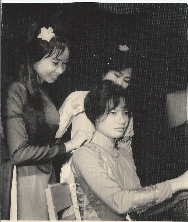 Lương Quỳ và em Tương Giang trang điểm lại để cô dâu ra mắt chào bà con họ nhà trai .