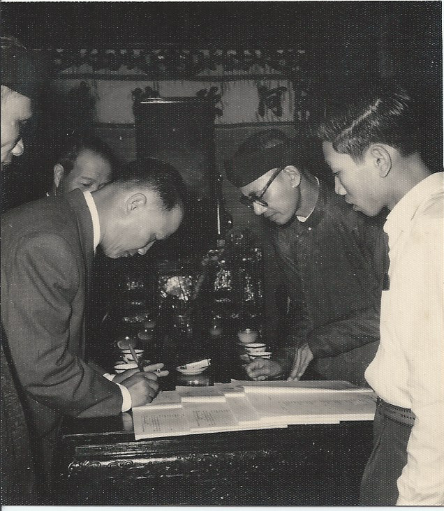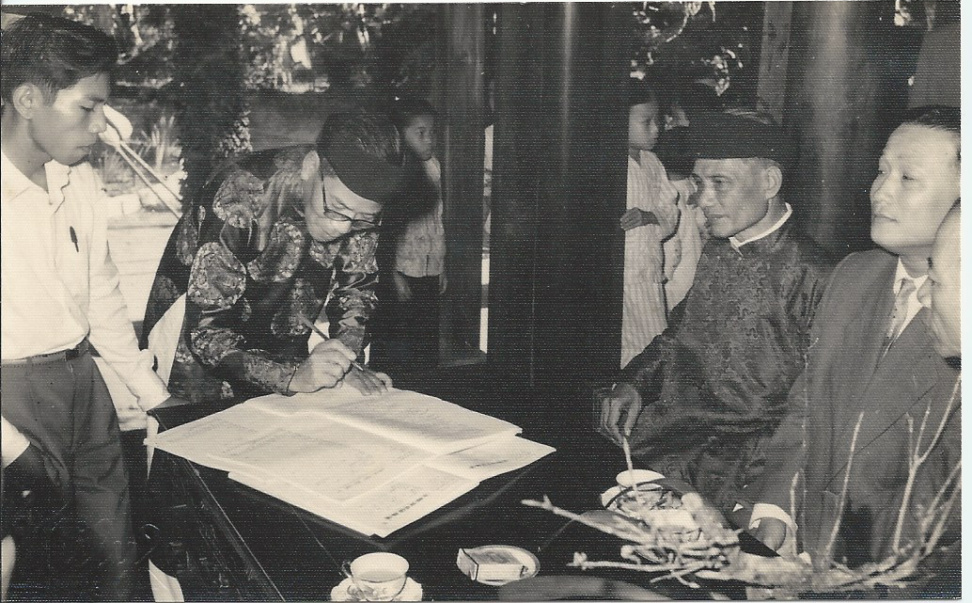 Ba anh Huyên ký. Dượng Trợ Chú Quýnh đại diện nhà trai nhà gái ký vào giấy Hôn Thú của hai cháu.