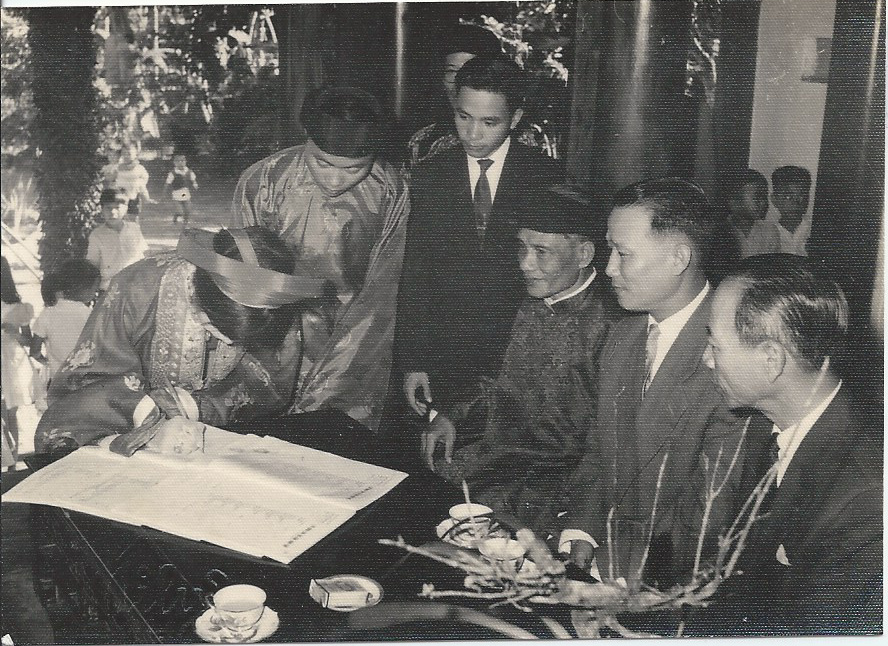 Huyên và Thanh Trí ký vào tờ hôn thú sau cùng.