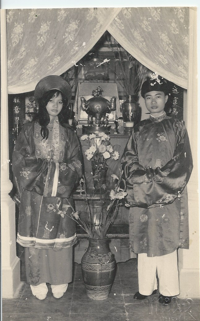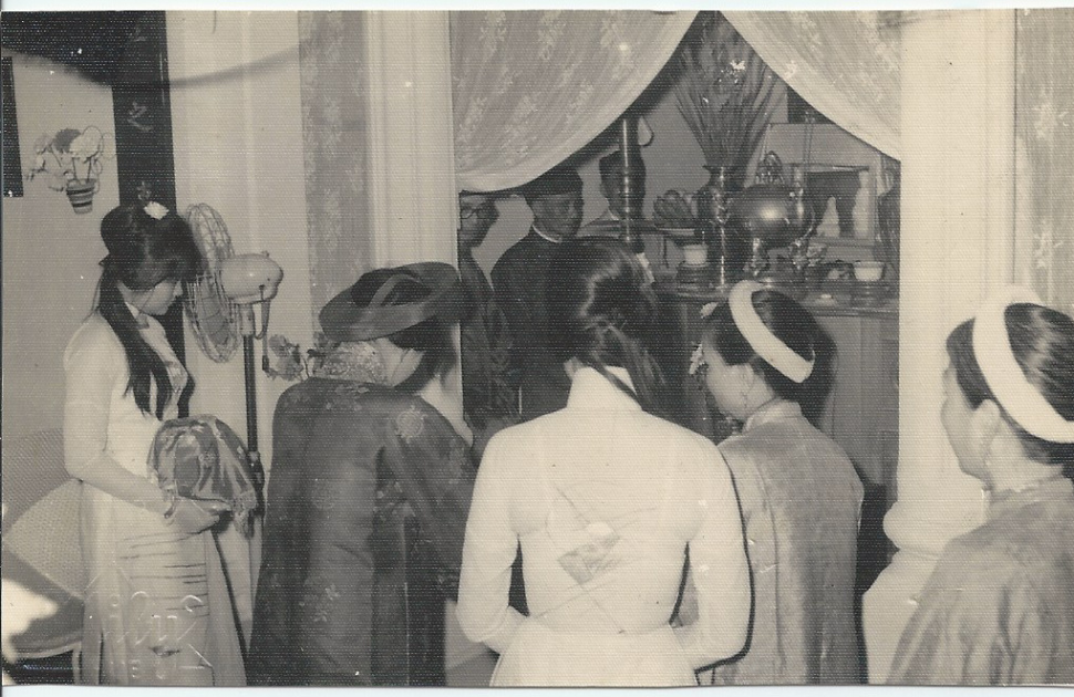 Chú rể cô dâu lạy bàn thờ gia tiên