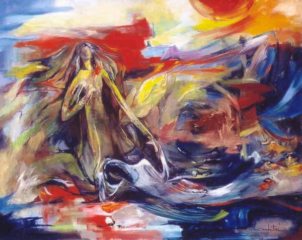 Though she is largely known for her paintings on silk. Thanh Trí was not satisfied working exclusively with the confines of this art form. To her, there is no resting pause on the path toward development of artistic creativity and self discovery. Reinforced by such a conviction, she stepped into the world of abstract painting with spontaneity and self-confidence, where she depicts feelings an emotions in images and colors which appeal to her vision, which enter her mind full of passion yet entirely sensible. In the light of this, perhaps the one exception is Linh Hồn Ngệ Thuật và Bóng Thời Gian, ‘The Artist’s Spirit and the Shadow of Time’, which gives the viewer the impression of witnessing Thanh Trí’s self-revelation: a rather agitated state of mind, a hint of fear, a cry of anguish conveyed in a confusion of colors surrounding a falling female figure, herself and her shadow then courageously rising up together. As for the rest of her works, I would venture to guess that her years of teaching experience more or less had an impact on her rational tendency, on the purity and absolute self-determination in her creative expression, so that composition and the lines themselves readily provide answers to questions which the viewer may have. Thanh Trí thus fully rose to her own artistic challenge. Then came a time when not only did she continue of paints, but she also heard poetic melodies echoing in her inspiration. She recorded them on paper like gathering as a present for others flowers unexpectedly blooming multicolor in her studio, those flowers that have kept her company during hours of solitary hard work. In truth, an artist is also a warrior having to struggle for survival in all circumstance. The more intense the struggle grows, the greater are works inspired by it. That having been said, I seem to have suddenly come to grasp the significance of the lacquer painting title Chiếc Lá, ‘Leaf’, included in her volume of art and poetry: a female soldier in fatigues and combat boots, with oak leaves clinging to her cheek and resting on her arms – the leaves that are fated to live a glorious life before being swept away by a wind during a storm. I believe that under the elegant appearance and feminine gentleness, Thanh Tri possesses power of self-determination when making choices, courageously conducting her life truthfully in spite of external circumstances. On her path of searching for and serving the true, the good and the beautiful, she has gained a manner of behavior colored with religious values, which helps her, in symbolic fatigues and combat boots, to walk steady steps in her career and her personal life. Now living thousand of miles away from her homeland, Thanh Trí cries out in alarm over the whirligig of events.