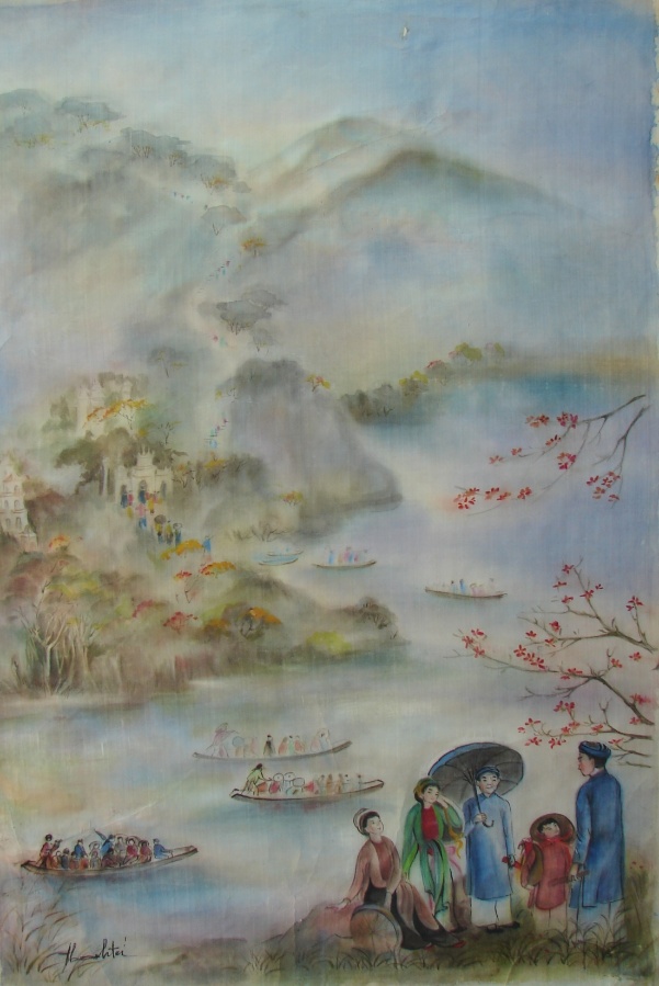 thăm gia đình anh chồng của Thanh Trí, và vẽ thắng cảnh Hà Nội, Chùa Hương, Vịnh