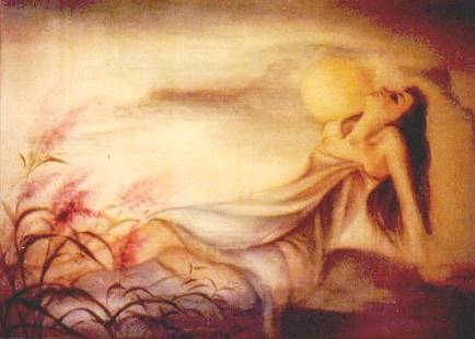 Trăng và Biển Màu nước trên lụa