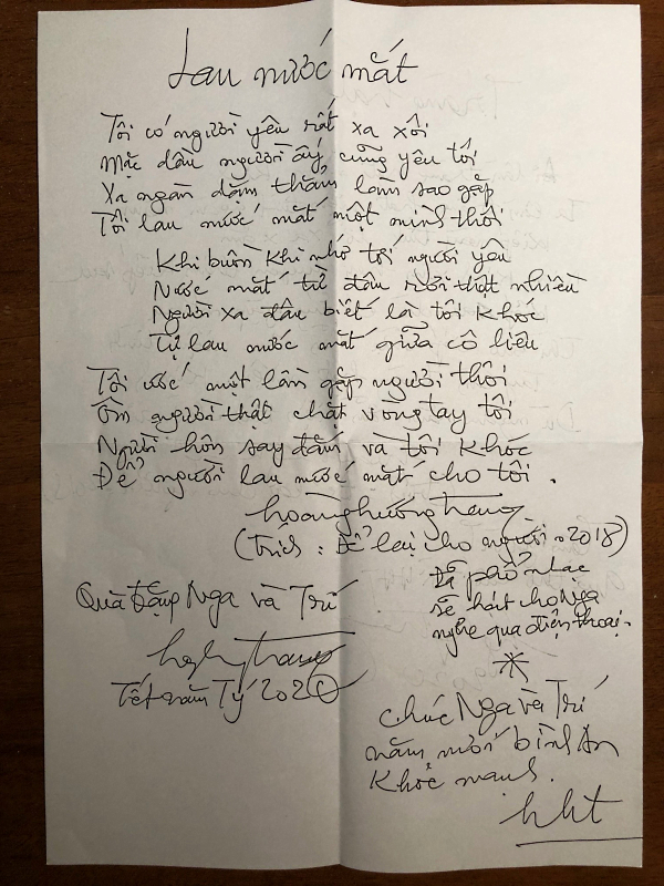 dòng chữ "Con thương ba lắm" anh cố trân trọng giữ gìn cho đừng bị phai