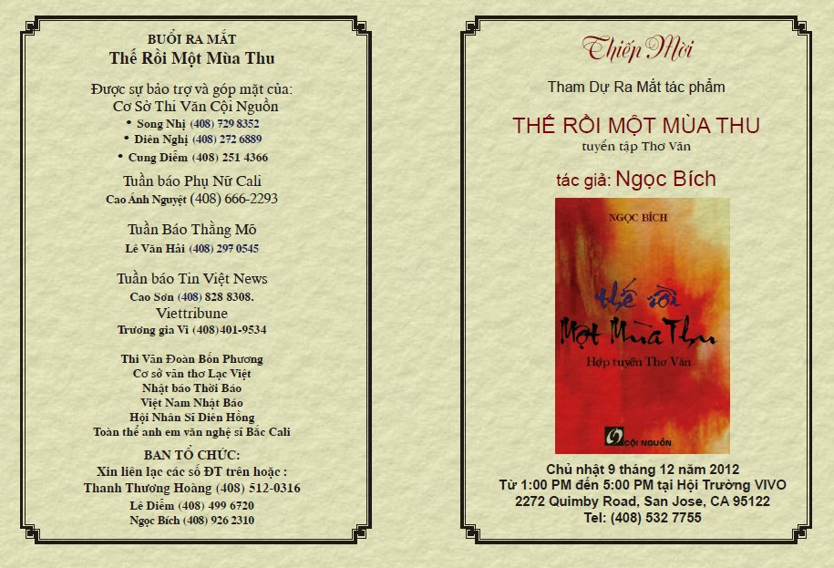 | Trân trọng phổ biến lời mời tham dự Buổi Ra Mắt tác phẩm