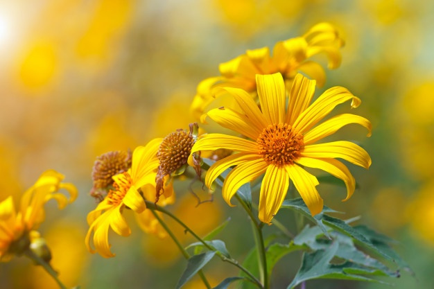 Một loài hoa có sức sống mạnh mẽ bất chấp thời tiết khắc nghiệt và môi sinh cằn cỗi. Hoa phơi phới ven đường, dưới lũng sâu, trên đèo cao, hoa mọc an nhiên tự tại, cho đi sự vui vẻ trẻ trung mà không nhận bất cứ sự chăm sóc ưu ái nào. Hoa có 13 cánh vàng tươi, ( chiếm 90%, cũng có thể ít hay nhiều hơn nhưng tỉ lệ thấp ), nhuỵ thẫm màu hơn, quây quần vô số núm nhỏ chắc chiu hạt giống mùa sau. Hoa nở hết ḿnh vào cuối thu đầu đông se lạnh. Không sớm nở tối tàn như Phù dung, không kiêu sa đài các như hoa lan, hoa hồng, không dại khờ mộc mạc như hoa cúc, thạch thảo, hoa dă quỳ có vẻ đẹp riêng mạnh mẽ hào phóng, mang tươi vui rạng rỡ cho đời. Hoa như cô gái Tây nguyên vào độ xuân th́. Hoa tiếp hoa giữ vẻ rạng ngời thanh xuân trên màu xanh b́nh yên của lá. Ở độ cao 1000m so với mực nước biển, thổ nhưỡng và khí hậu vùng cao thích hợp cho các loài cây trái và cơ man các loài hoa khoe sắc tỏa hương. Hoa cúc quỳ sinh ra và lớn lên an nhiên trên vùng cao nguyên bazan trù phú thách thức băo giông và gió nắng miền trung. Có dịp đi đường Trường Sơn vào những ngày chớm đông, hoa cúc quỳ sẽ niềm nở chào đón suốt quăng đường dài mênh mang không dứt. Hoa nở nụ cười xinh tươi rạng rỡ trong gió chuyển mùa. Mùa này hoa nở suốt đường đèo Ḷ Xo, đường nối Gia Lai -Daklak đường 19, đường 14, đèo Khánh Vĩnh và những con đường ngoại thành Đalat. . . Đà Lạt vào đông, hoa dă quỳ xôn xao trên khắp nẻo đường. Hoa cười tươi đón chào du khách. Hoa mộc mạc hiền lành, không phô trương tự phụ, b́nh thản an nhiên tô điểm cho vùng cao nguyên sương mù và gió lạnh. Hoa cho sắc màu tươi đẹp, mà không đ̣i hỏi sự chăm sóc ưu ái như các loài hoa khác.