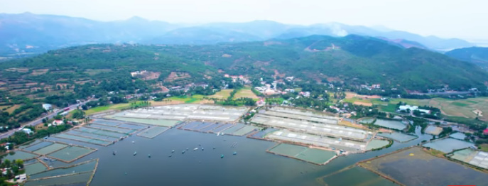 Cano lướt băng băng trên mặt biển lặng sóng, đưa chúng tôi đến thăm làng bè nổi độc đáo của vịnh Xuân Đài : Bè nuôi tôm hùm quây quần xúm xít kết nối với nhau, nương tựa vào nhau vững vàng trong những ngày mưa bão.