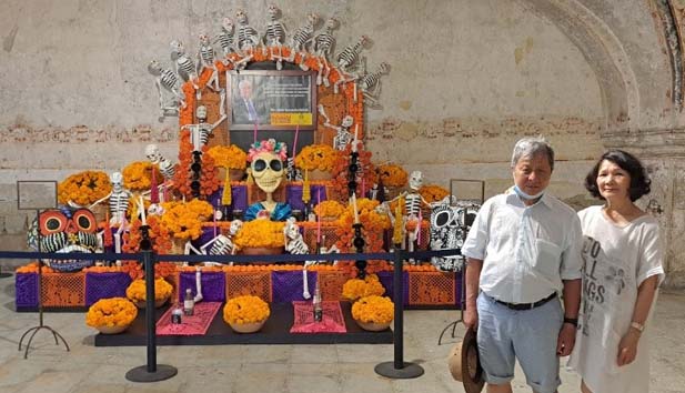 Lễ hội cho người chết Chúng tôi tới Oaxaca vào cuối tháng mười, thành phố đang rộn ràng chuẩn bị cho ‘Ngày của Người Chết’ (Día de los Muertos). Đây là một lễ hội có nguồn gốc từ khoảng 3000 năm trước, nguyên thủy là của sắc dân Aztec và vài sắc dân khác, được tổ chức vào cuối mùa hè đầu mùa thu. Khi người Tây Ban Nha đô hộ vùng Trung và Nam Mỹ, họ cố ép buộc để đưa ngày lễ này cho trùng với ngày Lễ Các Đẳng Linh Hồn của Công giáo La Mă (02/11), cho nên hiện nay ngày hội Día de los Muertos được tổ chức vào những ngày cuối tháng 10 (thường là 31/10), đầu tháng 11 (1, 2 và 6/11), và trở nên phổ thông khắp Mexico cùng các quốc gia khác trong vùng Trung Mỹ và một số quốc gia trên thế giới. Oaxaca là một trong những thành phố Mexico tổ chức ngày lễ hội này rầm rộ nhất. Dân bản địa Mexico thời xưa tin là người chết sẽ sang một thế giới khác, gọi là Chicunamiclán – Xứ của Người Chết, và mỗi năm họ có thể trở lại trần gian thăm bà con bạn bè. Tại Xứ của Người Chết, linh hồn của họ sẽ qua nhiều chặng thử thách để có thể cuối cùng nhập vào cơi vĩnh hằng Mictlán. Giống như Việt Nam, hoa vạn thọ, hoa mồng gà đỏ và hoa cúc được dùng cho tang lễ, mộ phần và bàn thờ. Hoa vạn thọ ở Mexico rất to, cây cao tới 2 thước. Người Mexico từ nhỏ đă được làm quen với xương người và đầu lâu, các cửa tiệm giờ đây được trang trí bằng các cổng chào kết hoa, treo h́nh sọ người và các bộ xương ở đủ mọi tư thế. Trong nhà, trong tiệm bắt đầu thấy họ chưng dọn bàn thờ, có nhiều từng (dường như chỉ có số lẻ – 3, 5 hoặc 7 từng), có h́nh người quá cố (và có những bộ xương tượng trưng cho tổ tiên của gịng họ), chưng hoa, thắp đèn cầy, bày các lễ vật là trái cây, bánh, chuẩn bị đón thân nhân từ cơi bên kia trở về. Trong những thứ bánh, có loại bánh ngọt gọi là Pan de Muerto (bánh của người chết), người mua hoặc làm bánh này có nguyện thầm trong đầu là bánh sẽ dành cho ai, như kiểu người ḿnh nấu đồ ăn đem để lên bàn thờ trước, gọi là dâng cho cha mẹ ông bà. Những góc trống nhỏ trên bàn thờ được tô điểm bằng vật trang trí có liên quan đến cái chết, như sọ người, h́nh ma…, những vật nhỏ này có giá vài chục peso, giúp cho các em nhỏ có được cảm giác đă góp phần cho việc đón người chết trở về. Các em học sinh cũng được tập diễn kịch, dự những cuộc thi trang trí những mộ phần đắp giả. Gia đ́nh cũng tới mộ phần của thân nhân để dọn dẹp và bầy hoa cùng lễ vật trên mộ.