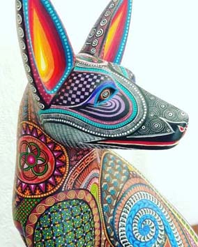Bù lại, Oaxaca có nhiều ngôi chợ rải rác. Hai chợ nhà lồng trong khu trung tâm thu hút du khách là chợ ‘20 tháng 11’ (20/11/1910 là ngày cách mạng Mexico bắt đầu nổi dậy chống lại chế độ chuyên quyền của tổng thống Porfirio Díaz kéo dài 26 năm) và chợ Benito Juárez trong block nhà kế bên. Hai chợ này có 4 cửa giống chợ Bến Thành. Ngoài quần áo, đồ dùng…, chợ ‘20 tháng 11’ có bán những đồ ăn thức uống làm sẵn, do đó khi mới bước vào chợ phải qua trạm rửa tay với nước sát trùng. Ăn trong những quán hàng bên trong chợ này rất rẻ, và nấu ngon, tuy nhiên phải chịu nóng hầm và phải quen tai một chút, v́ họ làm món ăn theo yêu cầu của khách, ngay cả đồ uống cũng vậy, ít có vụ chỉ chỏ. Chợ Benito Juárez bán những thực phẩm tươi sống, thịt thà rau củ v.v., v́ thế không cần rửa tay. Trái cây bán trong hai khu chợ này rẻ và là trái chín cây, nhất là có nhiều loại chuối, tôi t́nh cờ biết được thêm một điều là trái sa-pô-chê (hồng xiêm) có nguồn gốc từ Mexico, và tên của nó là do dân Zapotec gọi – trái Tzapoti (trái của người Zapotec?). Rất tiếc, mùa trái trứng gà (lêkima – lucuma) đă qua, trái này cũng có gốc từ miền nam Mexico. Củ sắn (củ đậu) cũng có nguồn gốc từ Mexico, tên của nó ở xứ này là Jicama, bày bán ê hề, bó thành từng bó to có cả lá xanh cho thấy là mới nhổ lên, giá vài chục peso. Ở Âu châu, tiệm Á đông gọi nó bằng tên Indonesia, Bangkwang. Benito Juárez là vị tổng thống Mexico đầu tiên có gốc là dân bản địa Zapotec. Ông được dân Mexico coi là vị quốc trưởng thương dân nhất, do đó tên ông đă được đặt cho nhiều con đường chính, chợ, trường học, bệnh viện v.v. ở khắp Mexico. Phi trường quốc tế ở thủ đô Mexico City cũng mang tên ông. Ở block xéo bên chợ ‘20 tháng 11’ là Chợ Sản phẩm Thủ công Mỹ nghệ (Mercado de Artesanias) nhà lồng chợ nhỏ hơn một chút, tràn đầy màu sắc với các đồ may thêu, xâu chuỗi, mũ áo, thảm và khăn v.v., đường chỉ mũi kim tương đối sắc sảo, nhất là hàng thêu và đồ dệt. Nhưng đây là ‘hàng chợ’, rẻ tiền và tŕnh độ mỹ thuật không cao. Muốn xem hàng thủ công mỹ nghệ cao cấp, có ‘Ngôi nhà Thủ công Mỹ nghệ Oaxaca’ (La Casa de las Artesanias de Oaxaca) ở khoảng giữa công viên Zócalo và nhà thờ Santo Domingo, có nhiều gian pḥng, mỗi gian trưng bày một ngành nghề thủ công, đặc sắc nhất theo tôi là những bức tượng thú vật bằng gỗ, sơn màu sắc sặc sỡ, tên là alebrije, thường mang dáng vẻ thần bí, là sản phẩm mỹ thuật đặc biệt của vùng này, nhưng giá tại đây gấp mấy chục lần so với hàng chợ (rất tiếc họ không cho chụp h́nh!). Cũng như nếu bạn muốn xem thêm về thảm và nghề dệt thảm th́ phải chịu khó tới làng Teotitlán del Valle cách một giờ xe; xem nghề làm đồ sành màu đen đặc biệt của vùng nam Mexico th́ nên tới làng San Bartolo Coyotepec nằm ở phía nam Oaxaca mà ngắm cho măn nhăn.