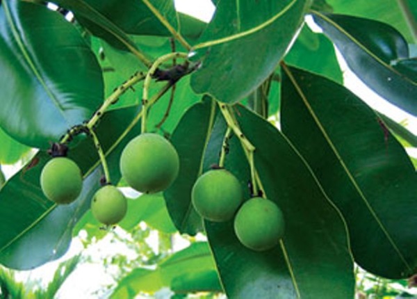 nhọt, mụn u. Đốt trái mù u cho cháy thành than, xong tán