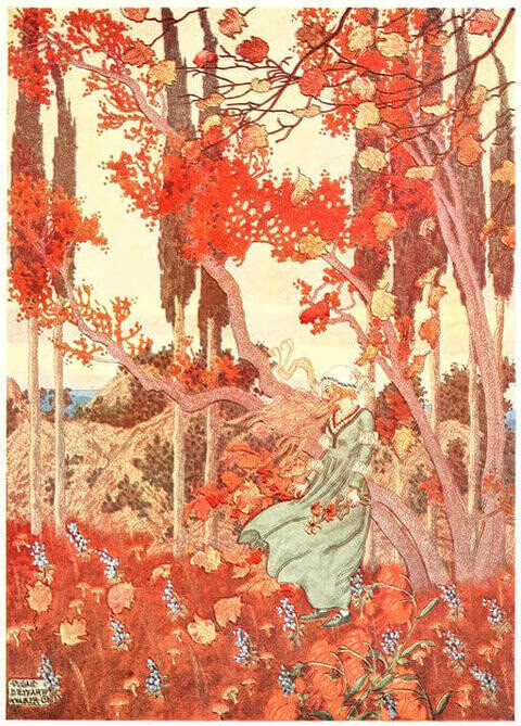 “Nhưng đêm hôm đó, khi ta nổi lên,” Gió kể, “phu nhân quý tộc kia đã nằm xuống để không bao giờ đứng dậy nữa; điều đến với bà cũng là điều sẽ đến với tất cả mọi người—chẳng có gì lạ cả. Waldemar Daa đứng lặng lẽ và nghiêm nghị một lúc; ‘Cây cao nhất có thể cúi mình, nhưng không gãy,’ một điều gì đó trong lòng ông đã nói như vậy. Ba cô con gái thì khóc lóc, còn mọi người trong lâu đài thì lau nước mắt; nhưng phu nhân Daa đã ra đi, và ta cũng rời đi! Vù!—vù!” Gió nói.