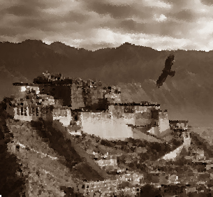 hướng về phía điện Potala. Lăo Hoàng Ngưu dơi theo bóng chim cho đến khi