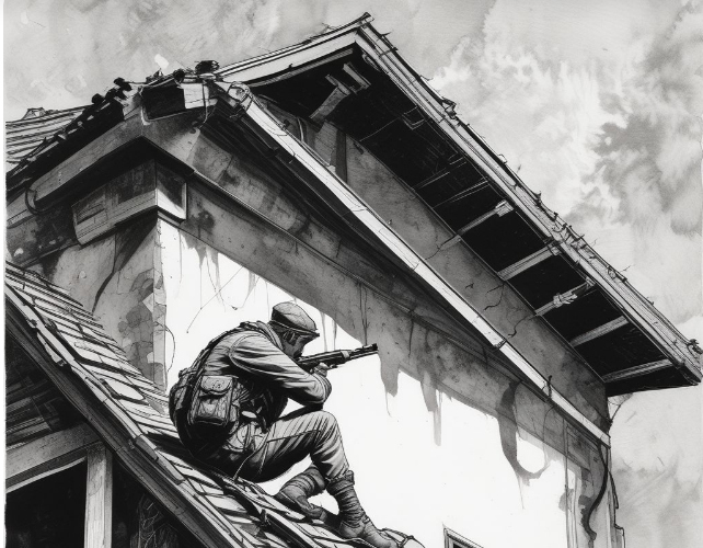 thương trên mái nhà. Kẻ địch ở mái nhà đối diện đang chặn đường thoát
