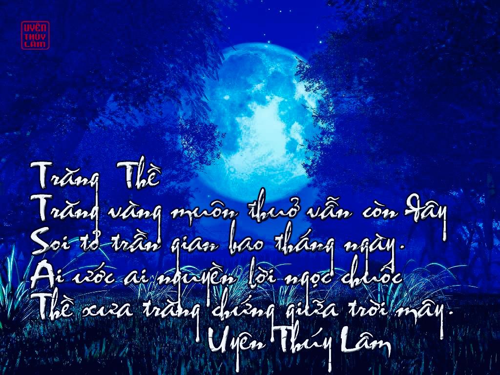 Trăng vàng muôn thuở vẫn còn đây, Soi tỏ trần gian bao tháng ngày. Ai ước, ai nguyền lời ngọc chuốt Thề xưa trăng chứng giữa trời mây. UYÊN THUÝ LÂM.